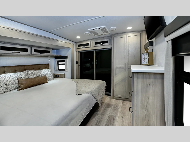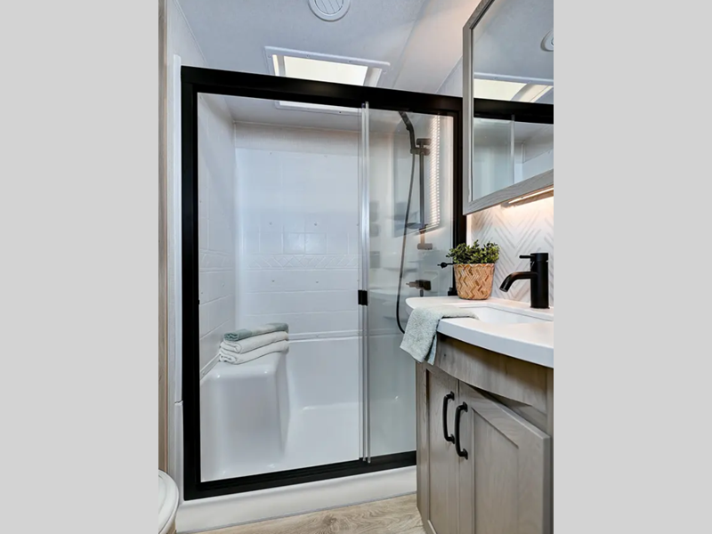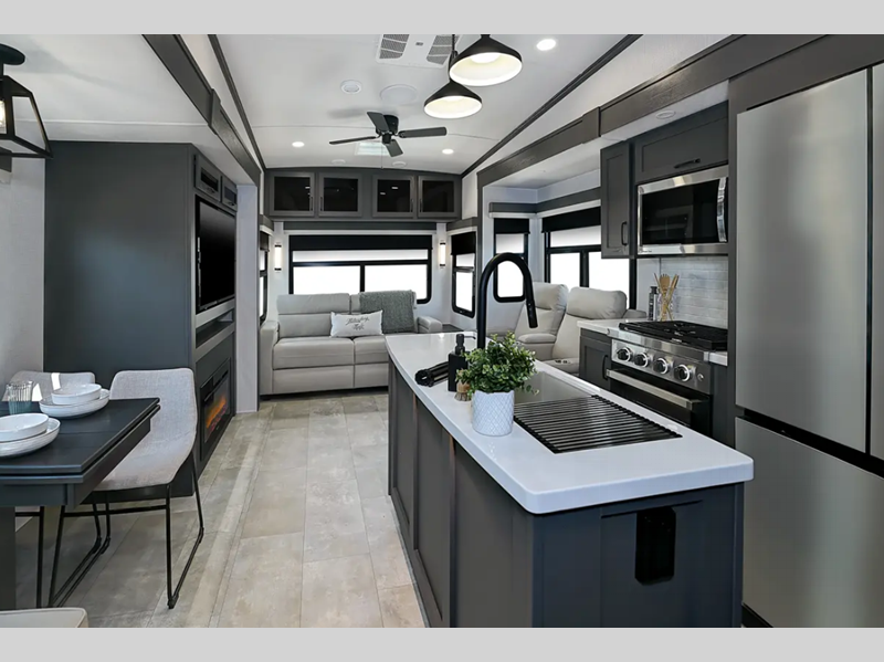 Sleeps 4 Slides 2 Length 34 ft Ext Width 8 ft Ext Height 13 ft 4 in Hitch Weight 1717 lbs Dry Weight 9884 lbs Cargo Capacity 2233 lbs Fresh Water Capacity 54 gals Grey Water Capacity 92 gals Black Water Capacity 53 gals Tire Size 16" Furnace BTU 35000 btu Available Beds Queen Refrigerator Type 12V Cooktop Burners 3 Number of Awnings 2 LP Tank Capacity 30 lbs Water Heater Capacity 12 gal Water Heater Type Quick Recovery Gas/Electric TV Info LR Smart TV Awning Info 10' and 15' Power with Adjustable Rain Dump & LED Light Strip Axle Count 2 Number of LP Tanks 2 Shower Type Standard Electrical Service 50 amp Similar Floorplans