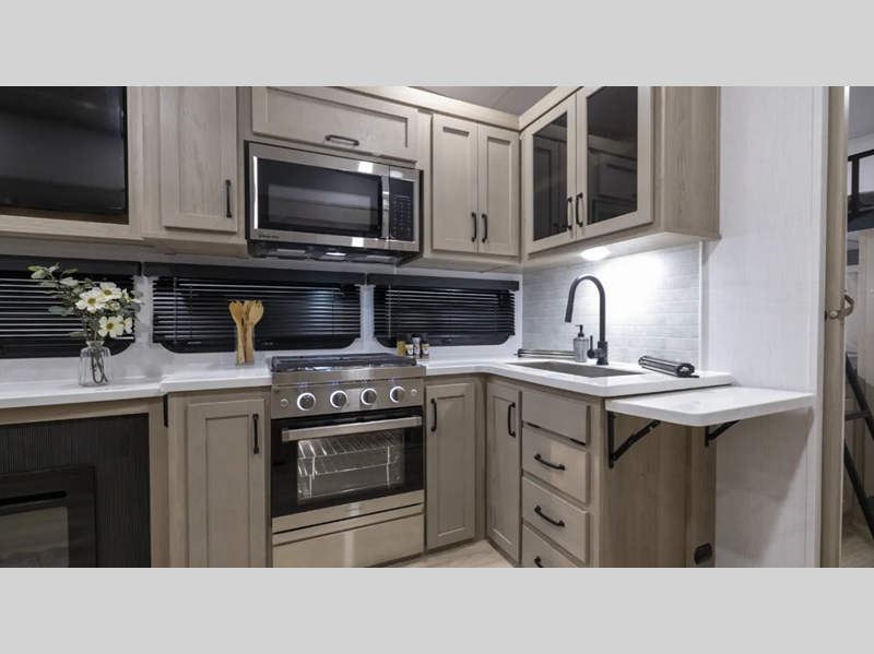 Each model is suited to meet the needs of your active family with outstanding features to enhance your camping experience. There is a generous amount of storage space, so you can bring the extras along too, and you'll appreciate the complete composite wall construction and 6-sided full aluminum frame for added durability. The solid surface kitchen countertops will have you feeling right at home, along with soft close hidden hinge cabinet hinges, lino flooring in the slide outs, and many more comforts.