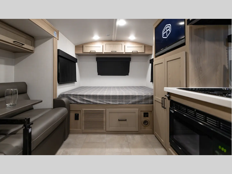 Sleeps 4 Slides 1 Length 21 ft 2 in Ext Width 7 ft 8 in Ext Height 10 ft 1 in Hitch Weight 619 lbs Dry Weight 4217 lbs Cargo Capacity 1278 lbs Fresh Water Capacity 31 gals Grey Water Capacity 42 gals Black Water Capacity 27 gals Furnace BTU 20000 btu Number Of Bunks 1 Available Beds Queen Refrigerator Type 12V Cooktop Burners 3 Number of Awnings 1 LP Tank Capacity 20 lbs Water Heater Type Gas/Electric AC BTU 13500 btu TV Info LR 12V Smart TV Awning Info 15' Power Axle Count 1 Number of LP Tanks 2 Shower Type Standard Similar Floorplans