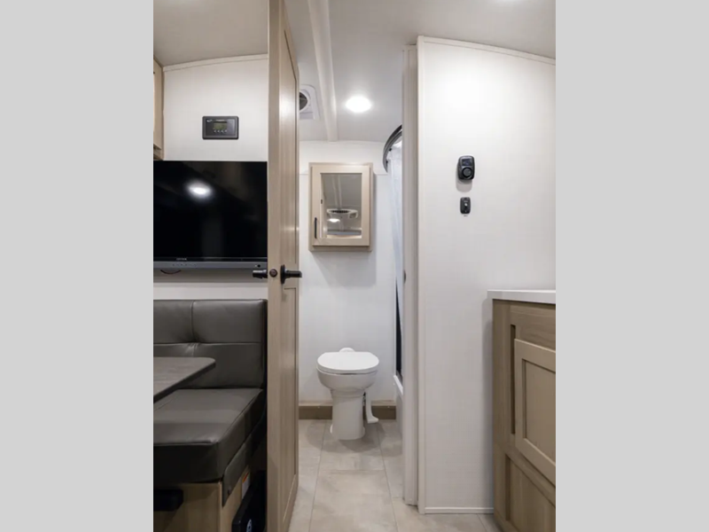 Sleeps 3 Length 14 ft 11 in Ext Width 7 ft 4 in Ext Height 7 ft 3 in Hitch Weight 290 lbs Dry Weight 2243 lbs Cargo Capacity 687 lbs Fresh Water Capacity 20 gals Grey Water Capacity 6 gals Tire Size 15" Furnace BTU 20000 btu Number Of Bunks 1 Refrigerator Type 12V Convection Cooking Yes Number of Awnings 1 LP Tank Capacity 20 lbs Water Heater Type On Demand AC BTU 11000 btu Awning Info 10' Thule Power Axle Count 1 Number of LP Tanks 2 Shower Type N/A Similar Floorplans