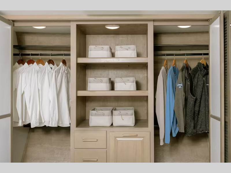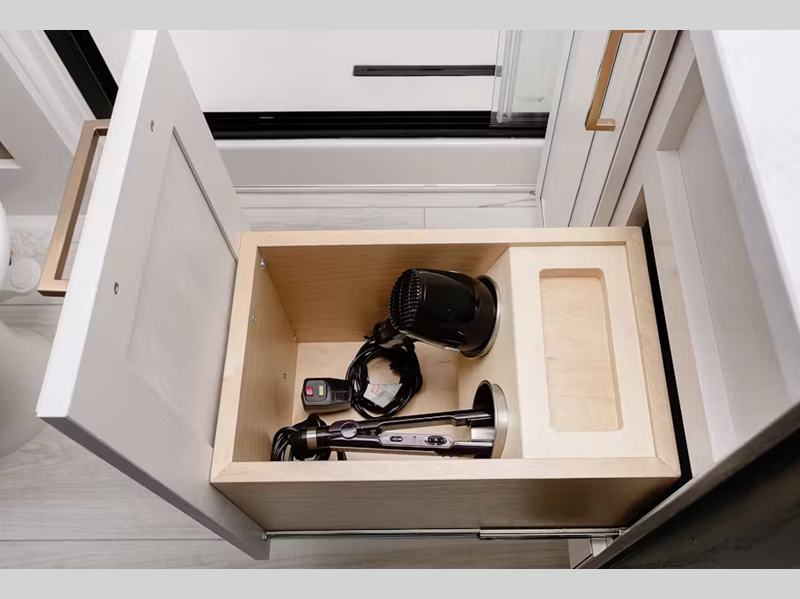 Each model continues to set the benchmark for luxury with thoughtfully designed features like the central vacuum, the JBL entertainment, and the Beauflor vinyl flooring throughout. The hardwood cabinets will stay looking beautiful for years, and the high-performance A/C will keep you cool during those hot summer camping months.