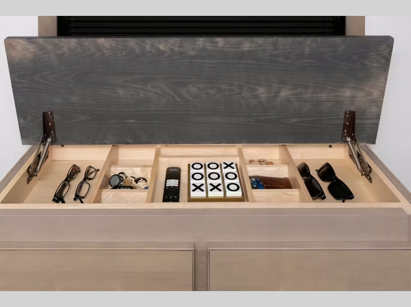 - Full extension ball bearing drawer glides, hidden cabinet hinges