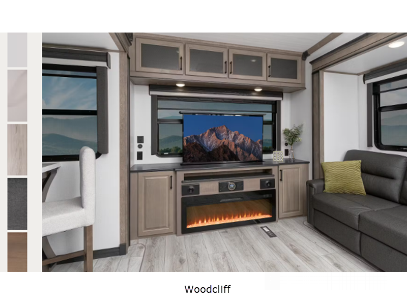 Sleeps 6 Slides 5 Length 41 ft Ext Height 13 ft 4 in Interior Color Oakmont, Woodcliff Exterior Color Volcano, Cobalt, Sterling, Glacier Full-Body Paint Choices Hitch Weight 2880 lbs Dry Weight 14951 lbs Cargo Capacity 3049 lbs Fresh Water Capacity 70 gals Grey Water Capacity 88 gals Black Water Capacity 88 gals Tire Size ST235/80R16G Furnace BTU 35000 btu Available Beds King Refrigerator Type Residential w/ Ice maker Refrigerator Size 18 cu ft Convection Cooking Yes Cooktop Burners 3 Shower Size 48" x 30" Number of Awnings 2 Axle Weight 7000 lbs LP Tank Capacity 30 lbs Water Heater Capacity 16 gal Water Heater Type Gas/Electric Quick Recovery AC BTU 45000 btu TV Info LR 50" Smart TV, BR 32" LCD TV Awning Info 17' & 11' Electric with LED Lights Axle Count 2 Washer/Dryer Available Yes Number of LP Tanks 2 Shower Type Shower w/Seat Electrical Service 50 amp Similar Floorplans