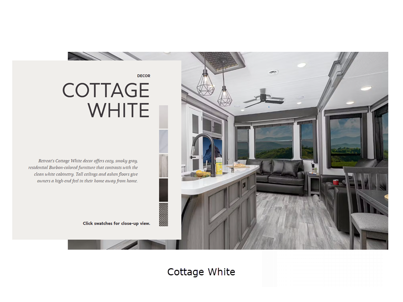 Sleeps 6 Slides 2 Ext Width 8 ft 6 in Interior Color Cottage White Available Beds King Cooktop Burners 3 Axle Count 2 Washer/Dryer Available Yes Number of LP Tanks 2 Shower Type Shower w/Seat Similar Floorplans