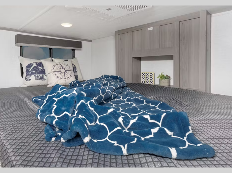 Sleeps 7 Slides 3 Length 40 ft 11 in Ext Width 8 ft 6 in Ext Height 13 ft 5 in Interior Color Cottage White Hitch Weight 1405 lbs Dry Weight 13018 lbs Cargo Capacity 982 lbs Fresh Water Capacity 53 gals Grey Water Capacity 39 gals Black Water Capacity 39 gals Tire Size ST235/85R16F Available Beds King Refrigerator Size 15 cu ft Cooktop Burners 3 LP Tank Capacity 30 lbs Axle Count 2 Number of LP Tanks 2 Shower Type Radius Similar Floorplans
