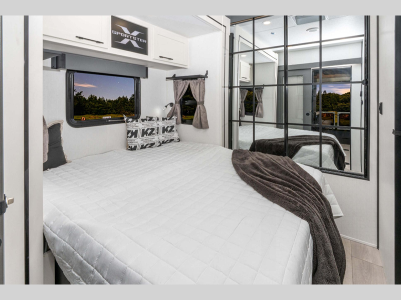 KZ Sportster X toy hauler travel trailer 33X highlights: Queen Bed Theater ... more about Sportster X 33X