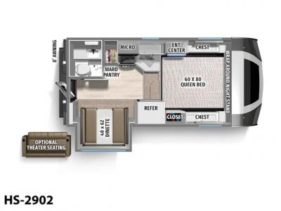 You will love all of the extra space provided in this hard side truck camper with the 40" x 62" booth dinette slide! If you're not needing the additional sleeping space provided by the dinette, choose the optional theater seating! Prepare your best meals with the cooktop, store your canned goods in the wardrobe/pantry, and and leftovers in the refrigerator, plus there is a microwave to pop a bag of popcorn at night. After a fun day of fishing, freshen up in the wet bath and relax on the front queen bed with a wrap around night stand, chests on either side, and an entertainment center. There is even a closet to keep clothes wrinkle-free!