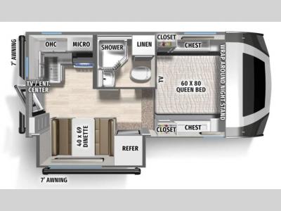 Sleeps 3 Slides 1 Length 19 ft 8 in Ext Width 8 ft 2 in Ext Height 9 ft 9 in Exterior Color White, Grey Dry Weight 3489 lbs Fresh Water Capacity 45 gals Grey Water Capacity 20 gals Black Water Capacity 20 gals Furnace BTU 20000 btu Available Beds Queen Refrigerator Type 12V Refrigerator Size 11 cu ft Cooktop Burners 3 Number of Awnings 2 Floor Length 10 ft Center of Gravity Front 45 in LP Tank Capacity 30 lbs Water Heater Type On Demand Truck Bed Size Long TV Info Two 32" TVs Awning Info 7' Side, 7' Rear Number of LP Tanks 1 Body Style Hard-Side Shower Type Neo-Angled